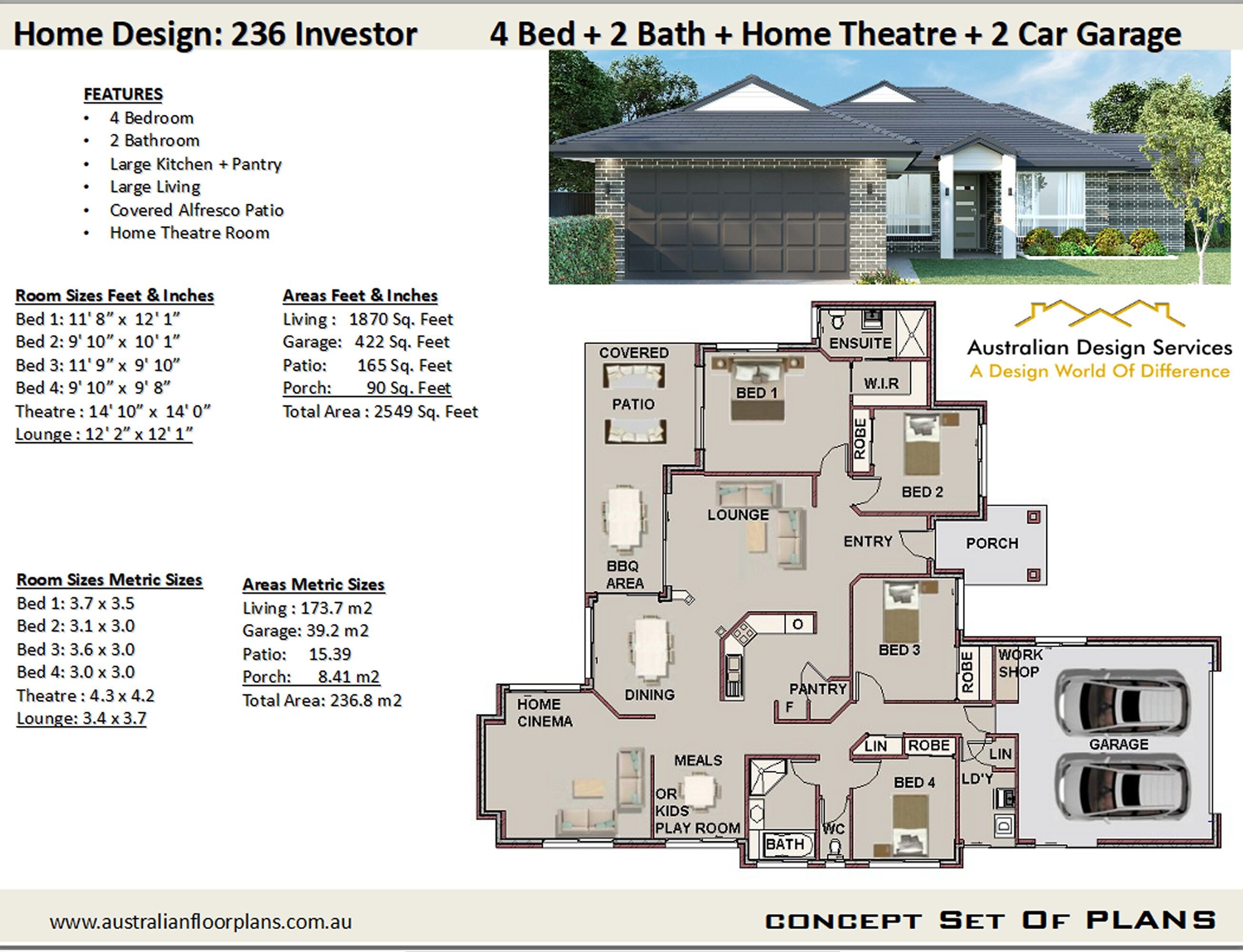 Modern House Design Plan 236 8 M2 Or 2549 Sq Feet 4 Bedroom Etsy Uk