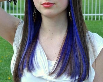100 Human Hair Bright Blue Strip Clip In Extension Streaks Etsy